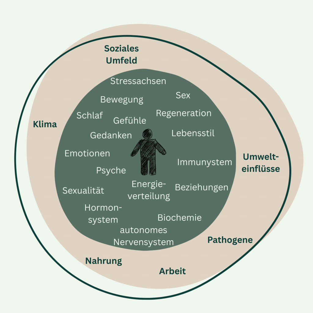 Denn häufig liegen die Ursachen für körperliche Beschwerden in Bereichen, die auf den ersten Blick nichts miteinander zu tun haben – Stress, Schlaf, Ernährung, Emotionen, Erlebnisse, soziale Bindungen.